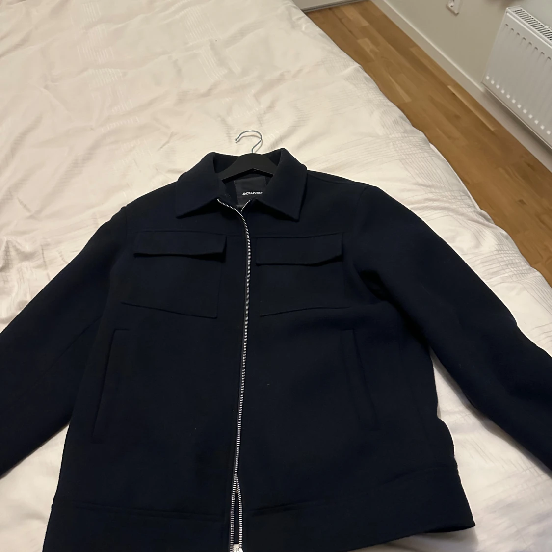 Säljer mina höst/vår ulljacka från Jack and Jones Mycket bra skick och väldigt varm. Storlek M. Nypris är 1500.