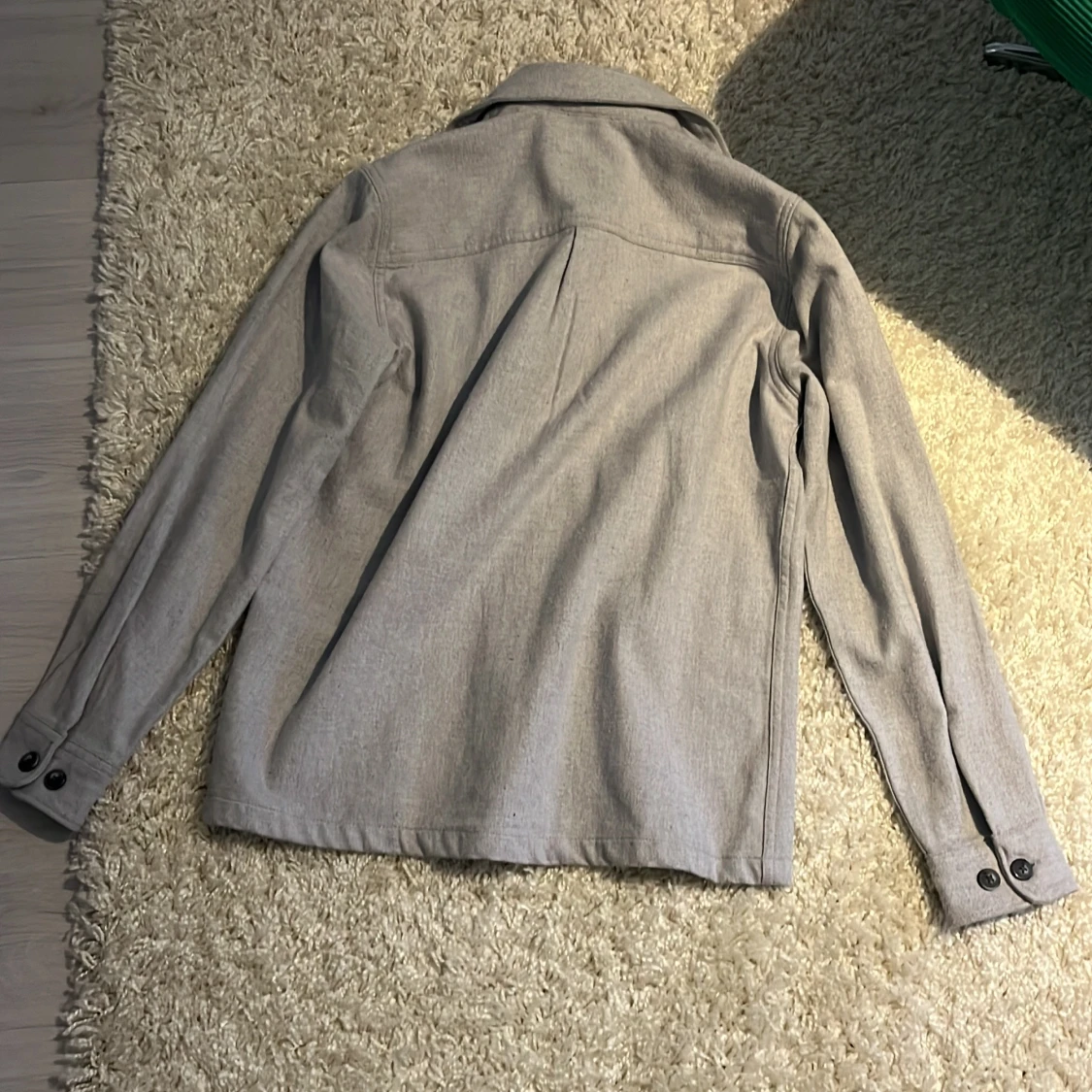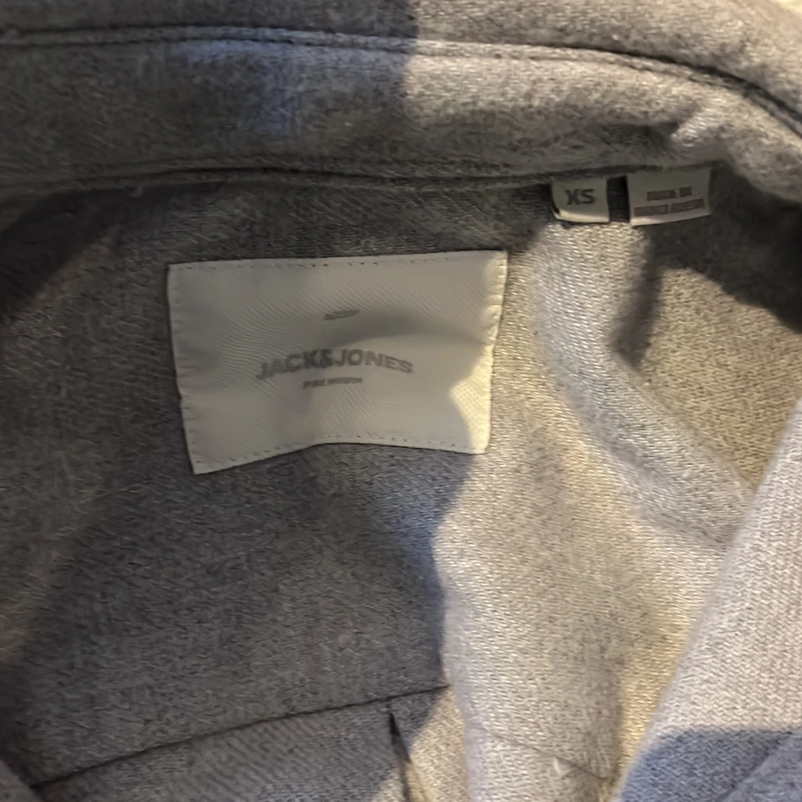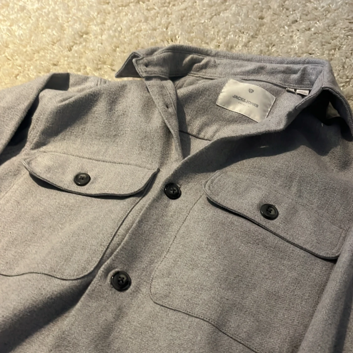 Säljer en stilren grå overshirt från Jack & Jones. Den har långa ärmar och knappar framtill samt två bröstfickor med knappar. Det är storlek xs men jag tycker det är väldigt stor i storleken. Priset är inte hugget i en sten.