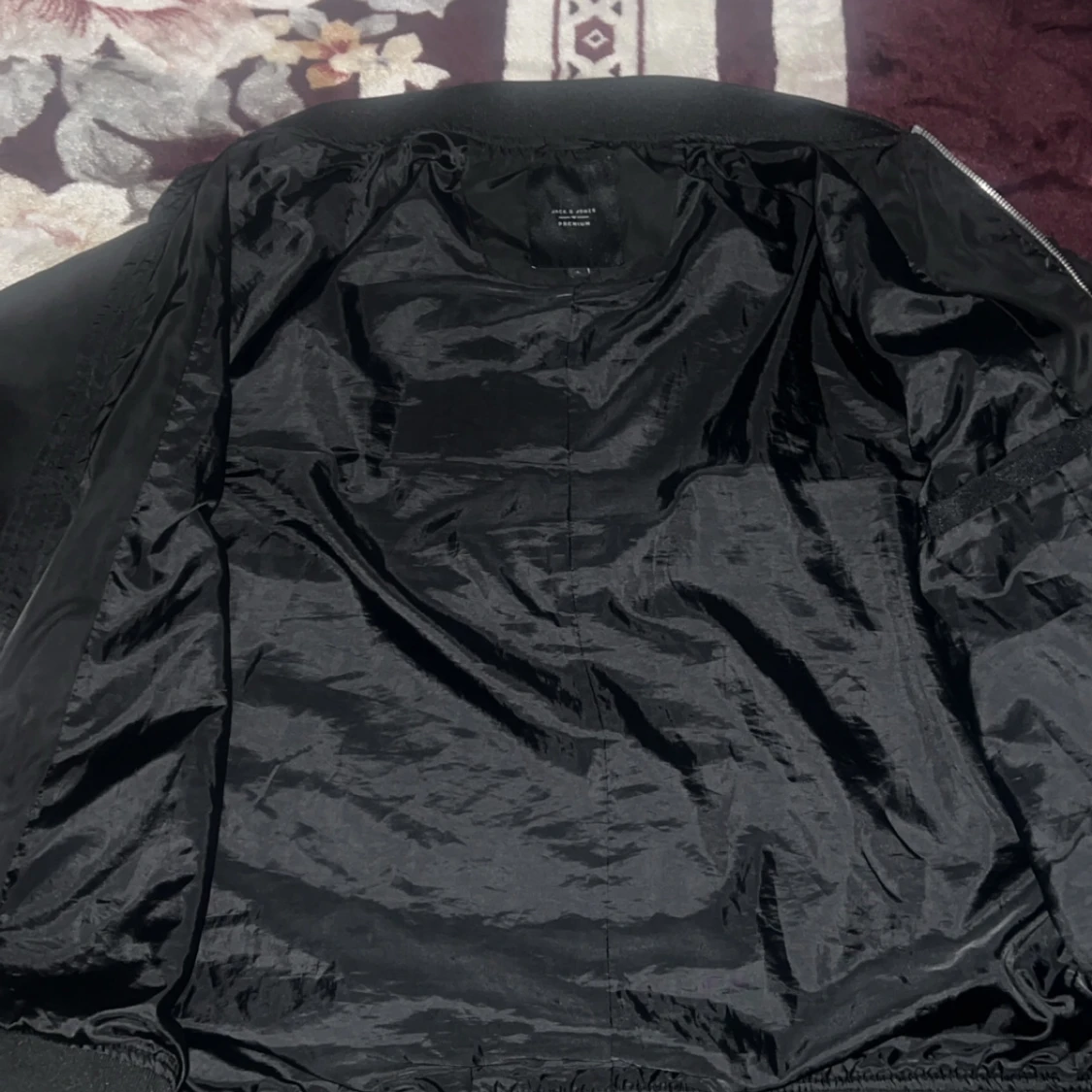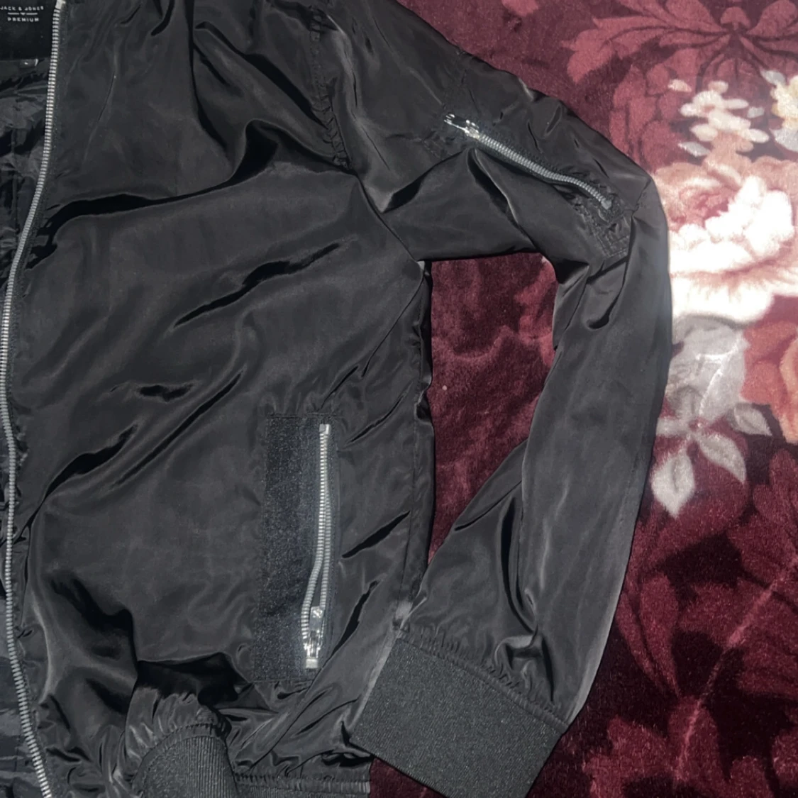 Snygg svart bomberjacka från Jack and Jones med dragkedja framtill och på fickorna. Jackan har en klassisk bomberstil med ribbade muddar vid ärmslut och nederkant. Perfekt för en stilren look.