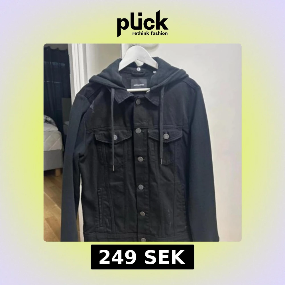 Svart jeansjacka från Jack & Jones i storlek L. Den är i storlek L men känns mer oxv passar mer dom som har S-M, knappts använd, stilren och riktigt snygg