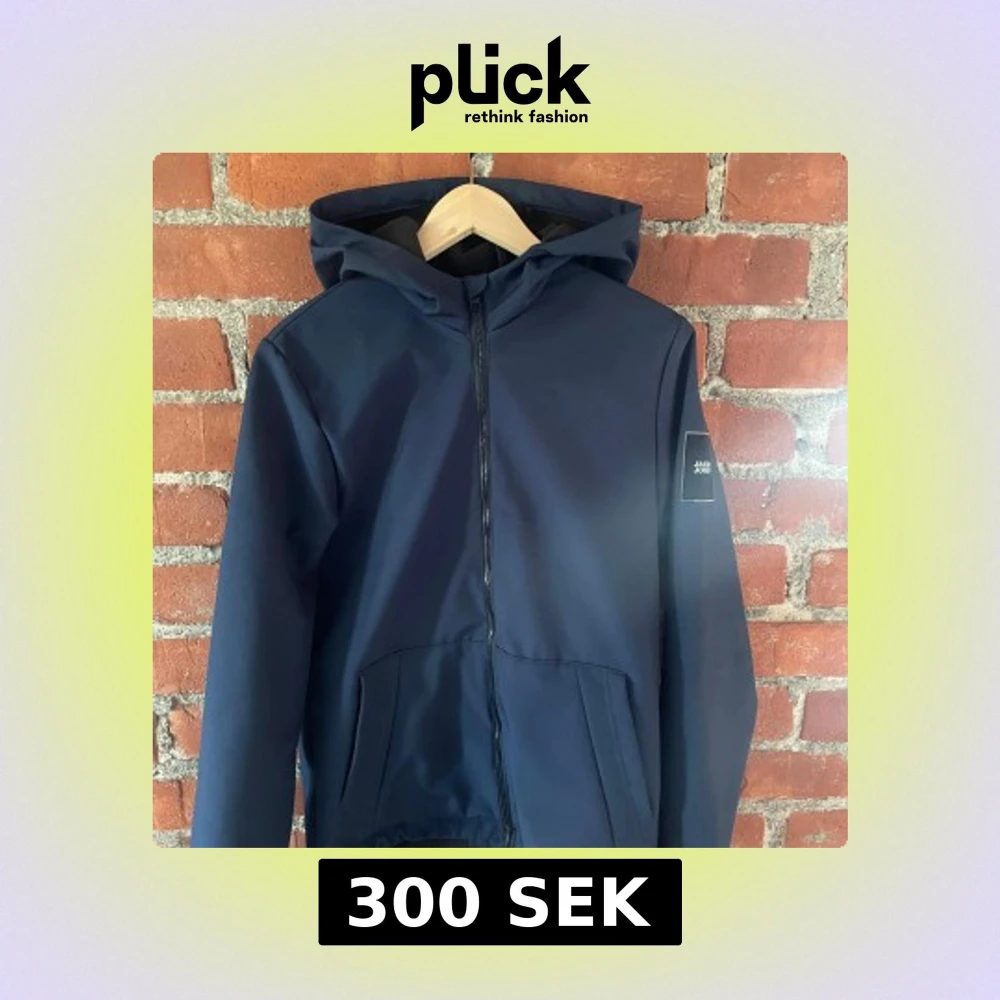 Snygg mörkblå vindjacka från Jack & Jones med huva och hel dragkedja framtill. Jackan har två fickor och en stilren patch på ärmen. Perfekt för dig som vill ha en enkel och clean look.