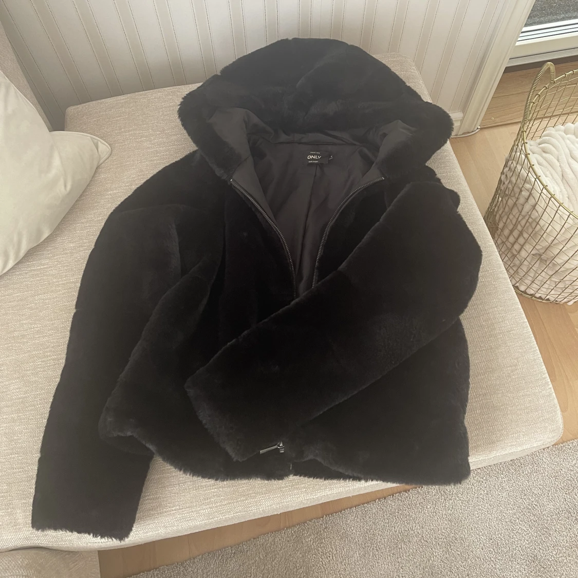 En superskön svart jacka med luva som inte riktigt kommer till användning, går bra att använda ”köp nu” funktionen ☺️☺️
