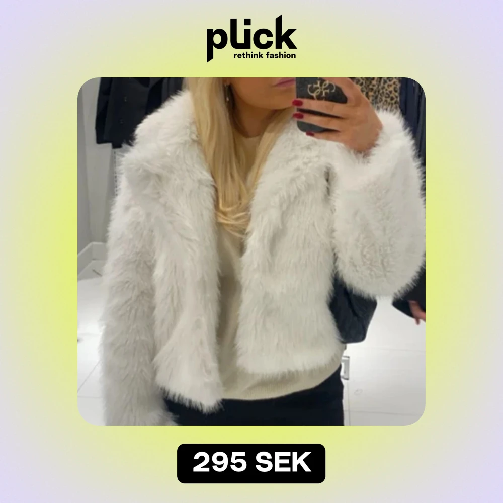 Säljer nu min vita fejk päls jacka, smink fläckar finns, går säkerligen bort i tvätten