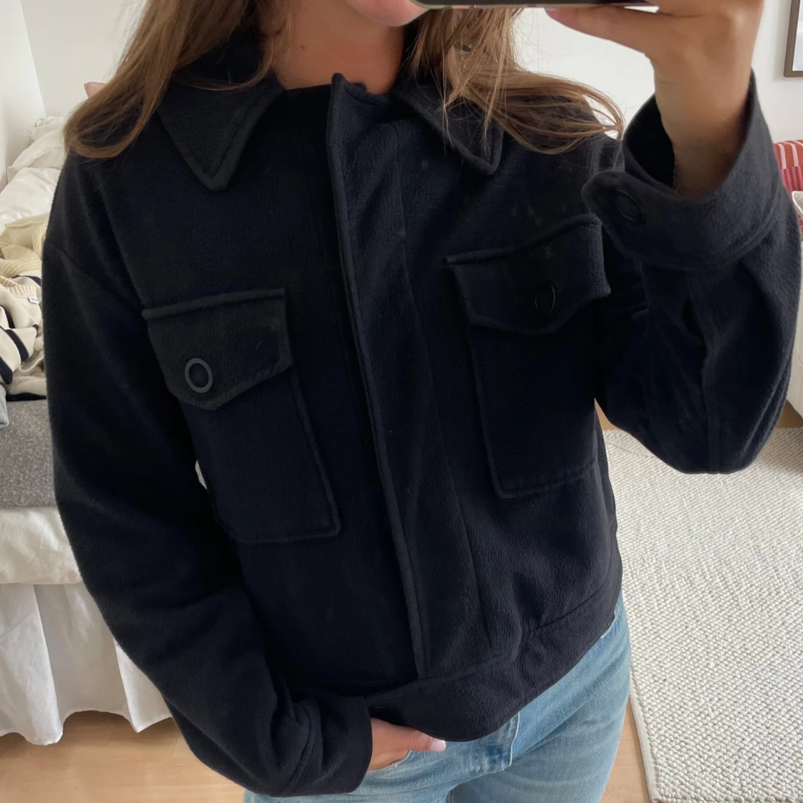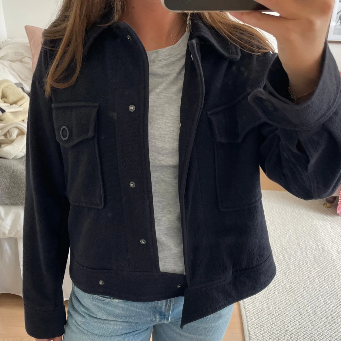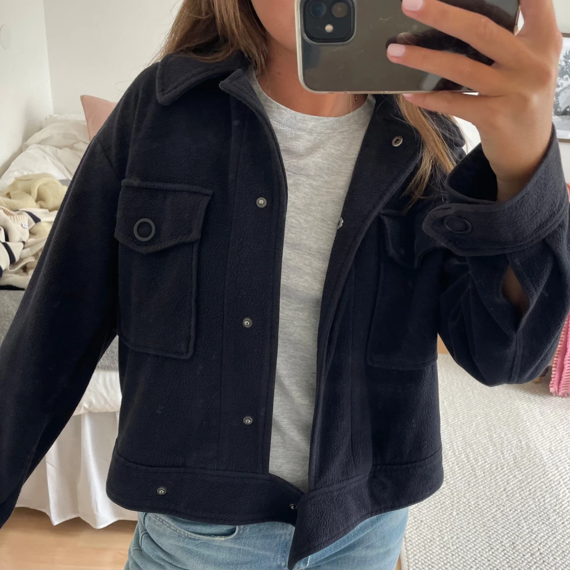 Jättesnygg mörkblå jacka från HM! Köpt för flera år sedan så finns inte kvar på hemsidan. Jättefint skick, endast använd fåtal gånger. Passar perfekt till höst/vår men även sommar. Storlek S