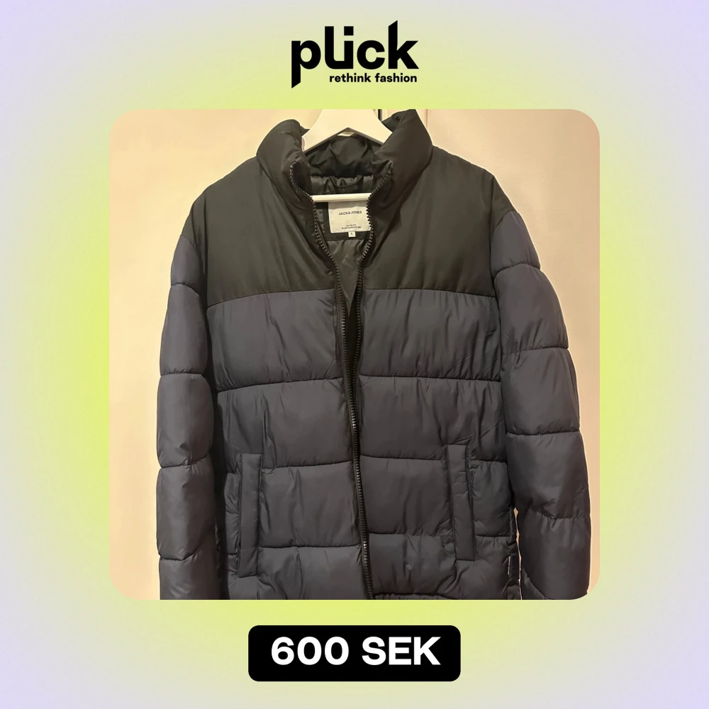Jack & Jones - Marinblå blockfärgad pufferjacka med ståkrage. Storlek L Jackan är i nytt skick och oanvänd