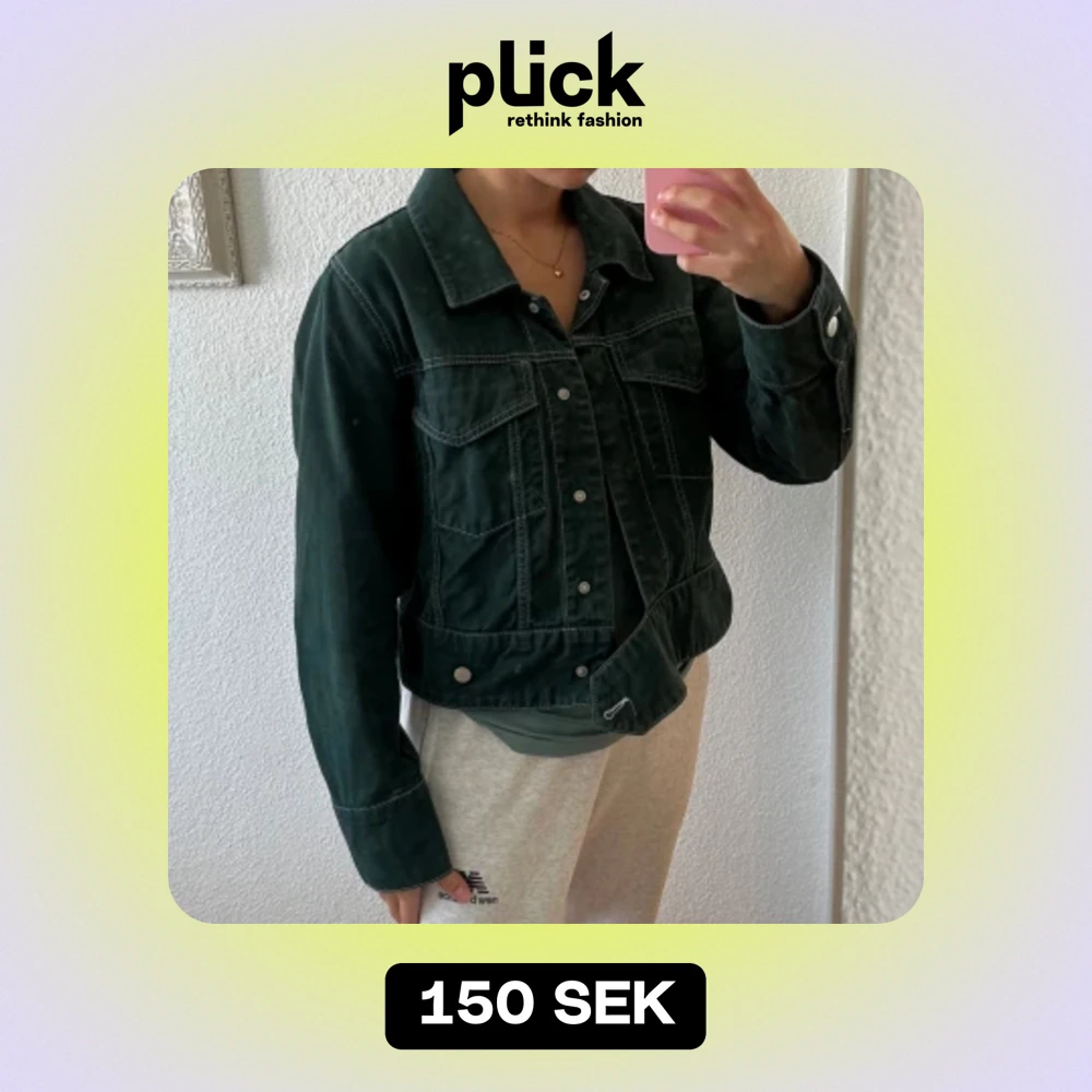 Riktigt fin jacka från NA-KD i mörkgrönt jeansmaterial med vita sömmar, storlek 36.