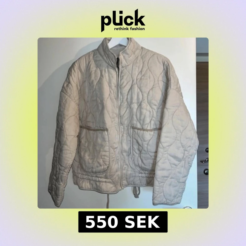 Quiltad jacka, typ cremefärgad/smutsvit färg.