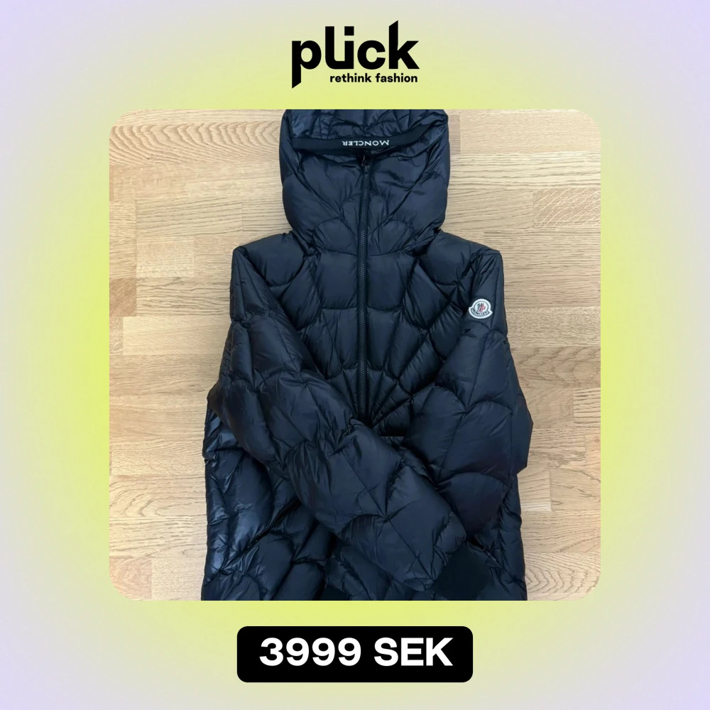 Säljer en snygg svart dunjacka från Moncler i mycket bra skick. Jackan har en cool quiltad design som påminner om ett spindelnät och en praktisk huva. Perfekt för kyliga höst- och vinterdagar. Den har en dragkedja framtill och långa ärmar. Passar både till vardags och lite finare tillfällen.