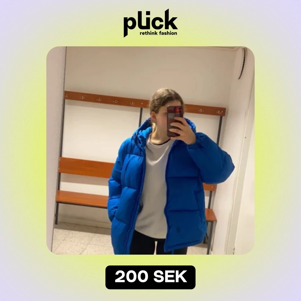 Säljer min blåa jacka från hm, storlek l men passar på mig som är en s/m, den har en fläck längst ner därav priset🩷