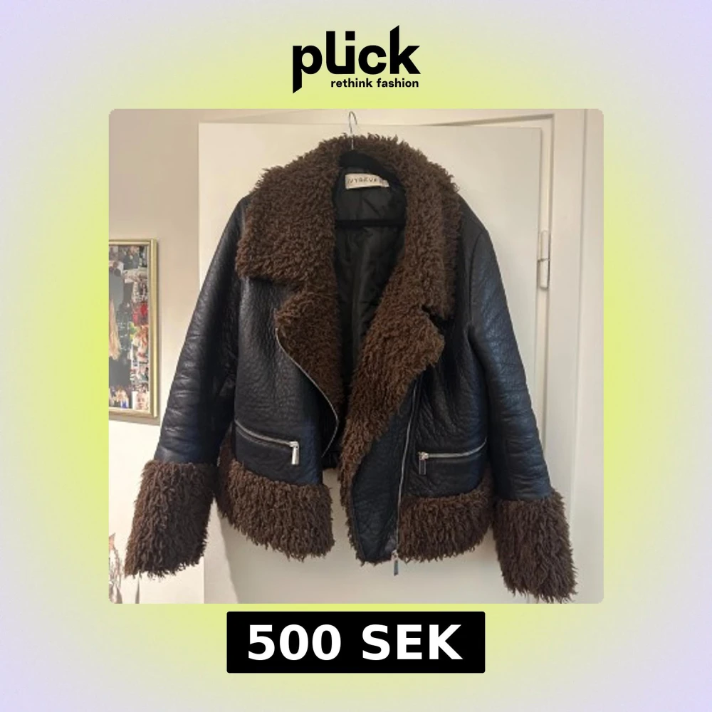 Snygg svart skinnjacka från Ivyrevel med mjuka bruna pälsdetaljer på krage, ärmslut och nederkant. Jackan har en cool asymmetrisk dragkedja och två praktiska fickor med dragkedjor. Perfekt för att hålla stilen i kyligare väder.