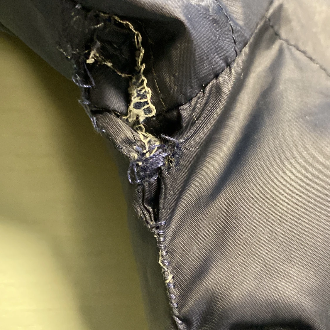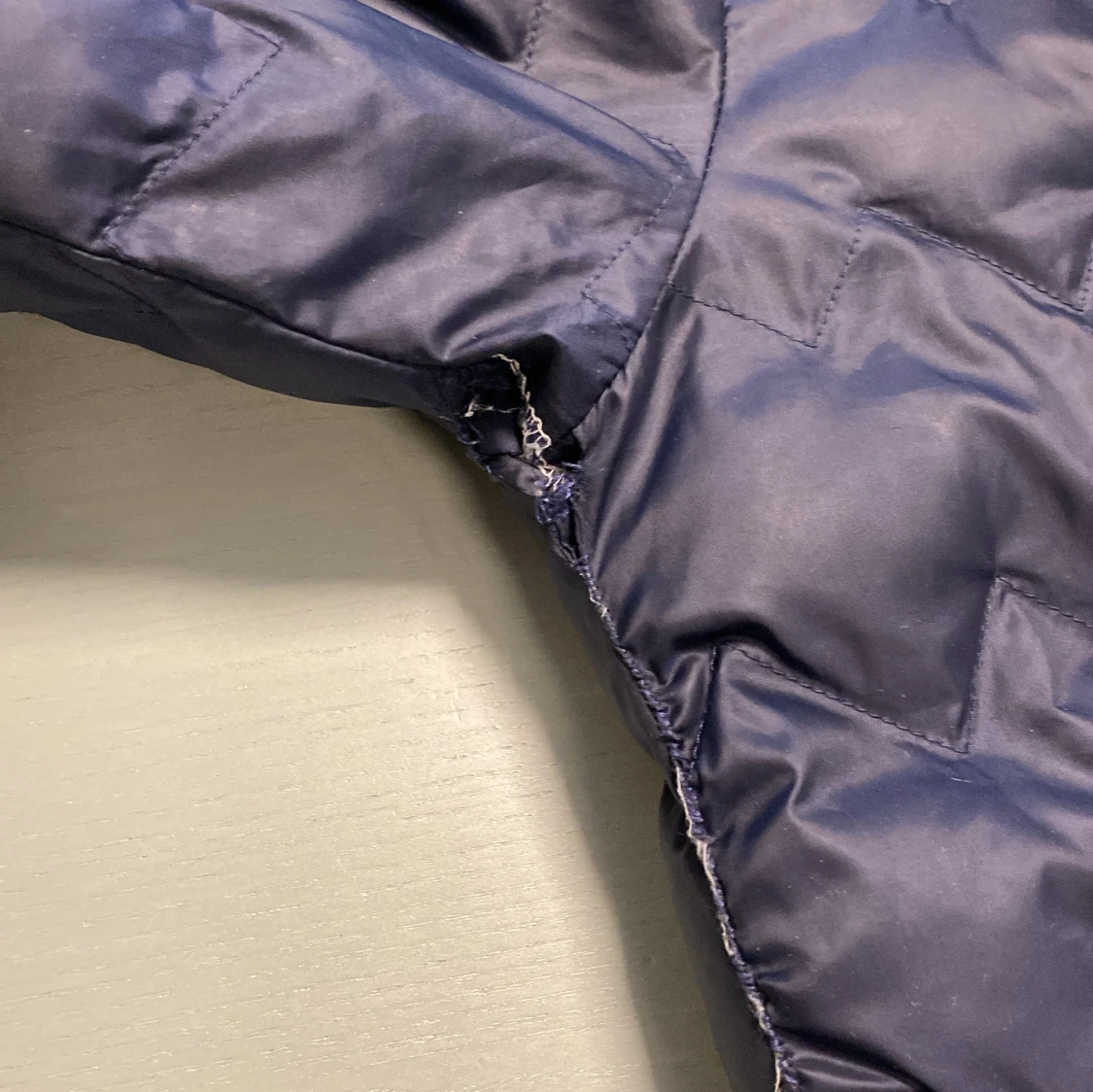 Skada vid höger arm, hål som går att sy. Storlek: S