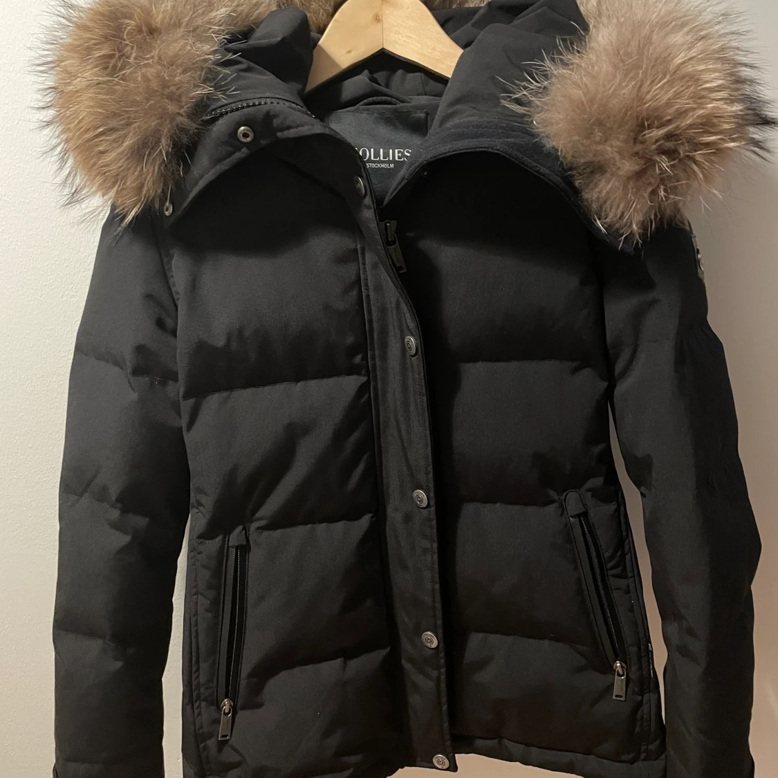 En fin svart vinterjacka med äkta päls. Den är i jätte bra skick och ser fortfarande helt ny ut! Hollies jackan är i modellen Jay peak.