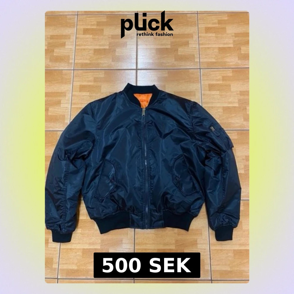 Svart bomberjacka från MIL-TEC med orange foder, klassisk ribbad krage och muddar. Jackan har dragkedja framtill, fickor med tryckknappar och en ficka på ärmen. Materialet är 100% polyester och insidan är riktigt färgstark. Finns en liten defekt på insidan.