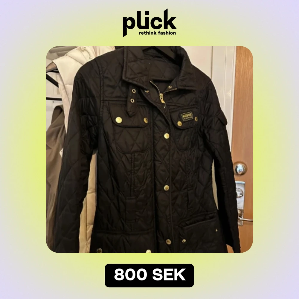 Säljer en snygg svart quiltad jacka från Barbour. Den har guldiga knappar och en dragkedja framtill. Jackan är perfekt för höst och vår, med en stilren design och praktiska fickor. Den är långärmad och har en normal passform.