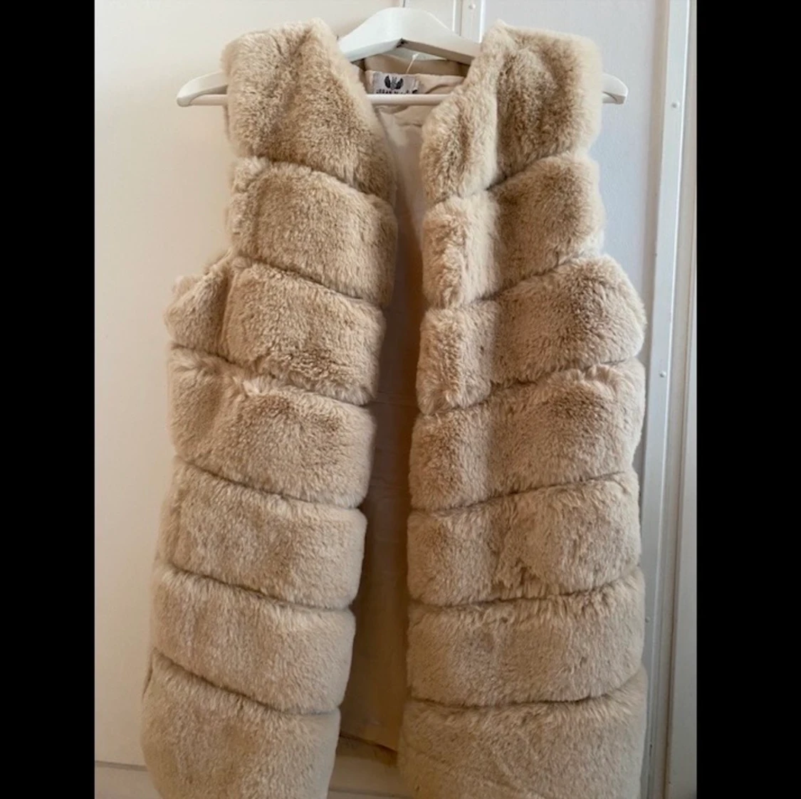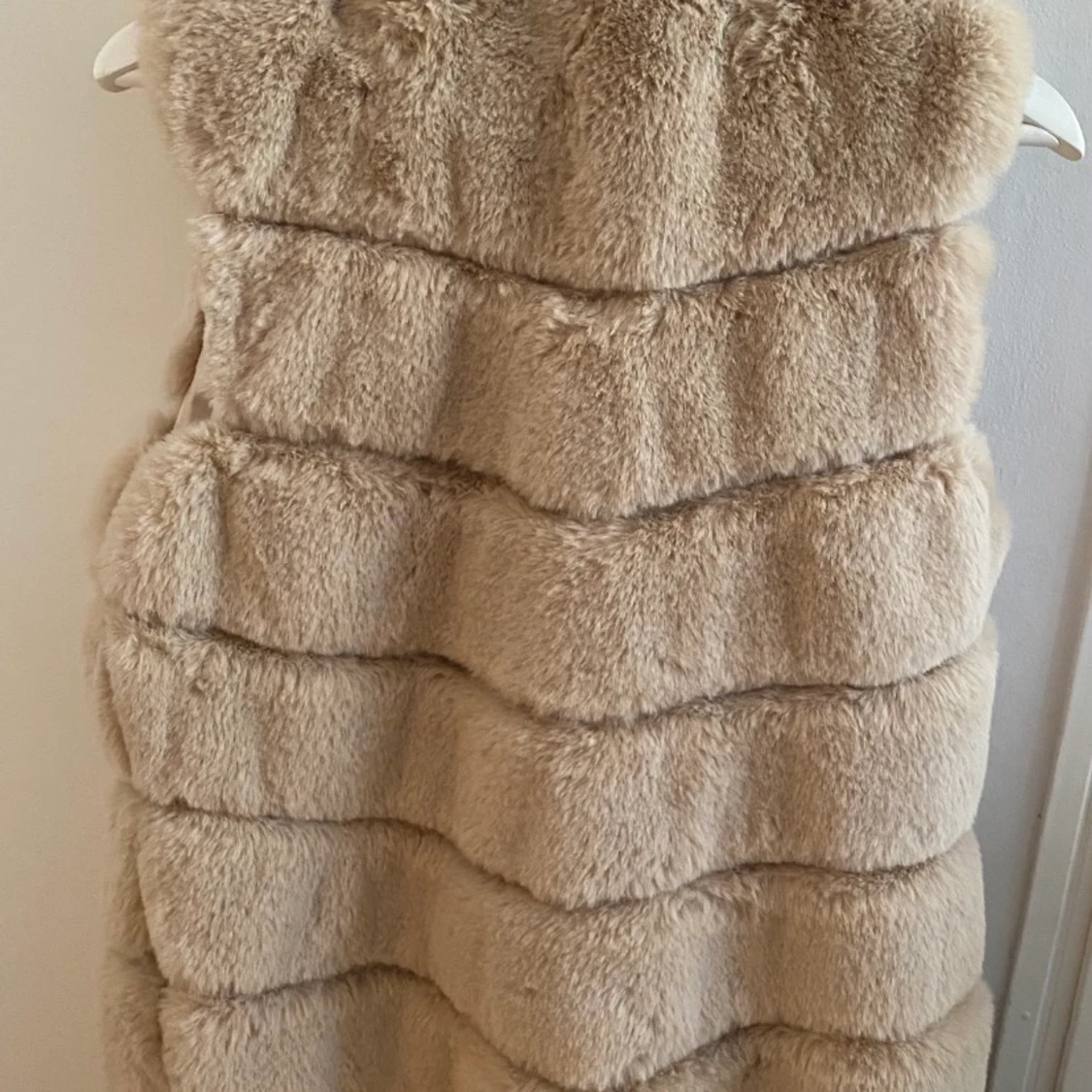Pälsväst, ca 100cm över bysten och ca 75cm lång. Den är i storlek S/M och använd cirka 3 gånger. Nypris: 650kr