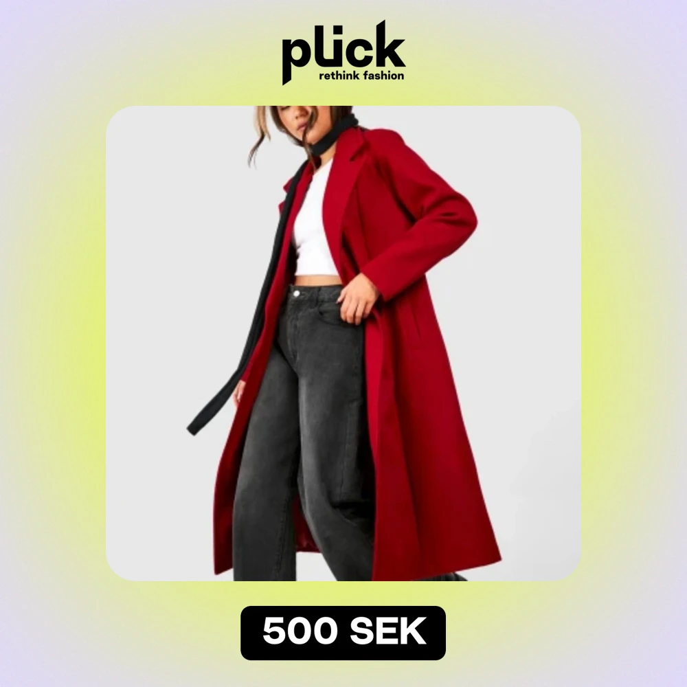Säljer en snygg röd kappa från Boohoo. Den är lång och har en klassisk design med knappar framtill. Perfekt för höst och vinter. Jackan är i nyskick och har en normal passform. Den är tillverkad i ett mjukt och bekvämt material som håller dig varm under kyliga dagar. Passar både till vardags och fest!