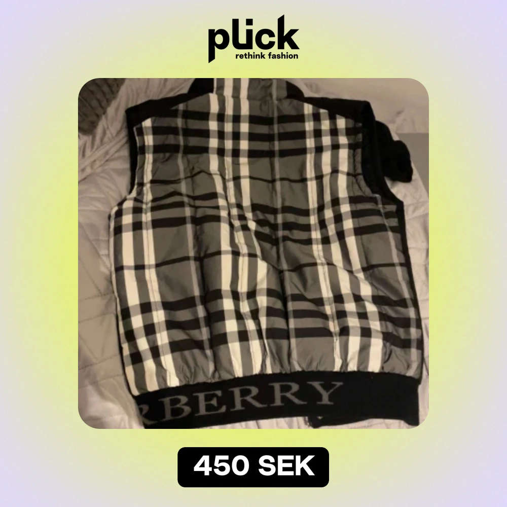 Säljer en snygg svart dunväst från Burberry med klassiskt rutigt mönster. Västen har en dragkedja och knappar framtill, vilket gör den både praktisk och stilren. Perfekt för höst och vår när du vill hålla dig varm men ändå se trendig ut.