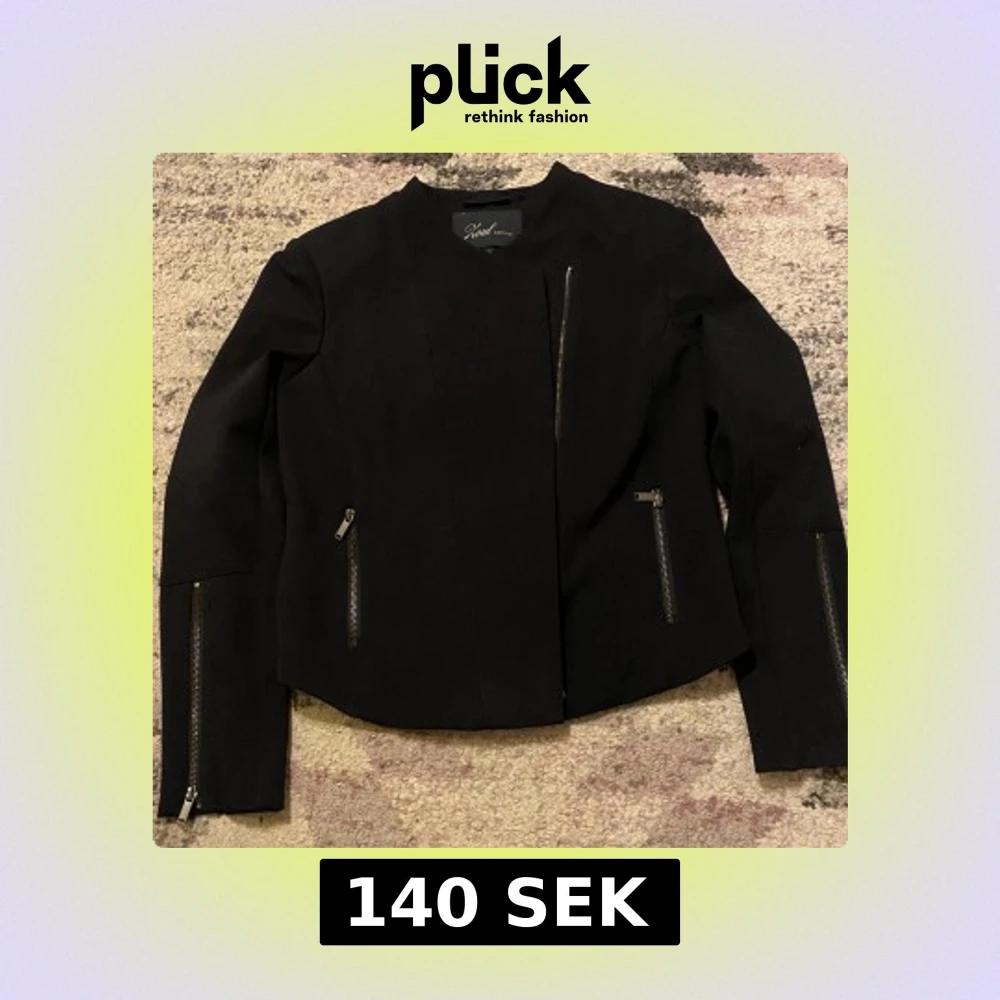 Snygg svart jacka från Xoul Edition med dragkedjor framtill och på fickorna. Den är långärmad och har en normal passform. Stroelek S/M
