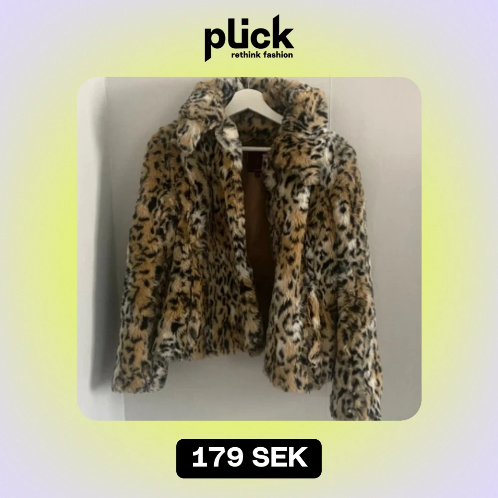 Pälsjacka i leopard mönster. Köpt secondhand men tyvärr aldrig använd. (Jackan är ej ojämn eller sen utan den hänger lite snett bara)