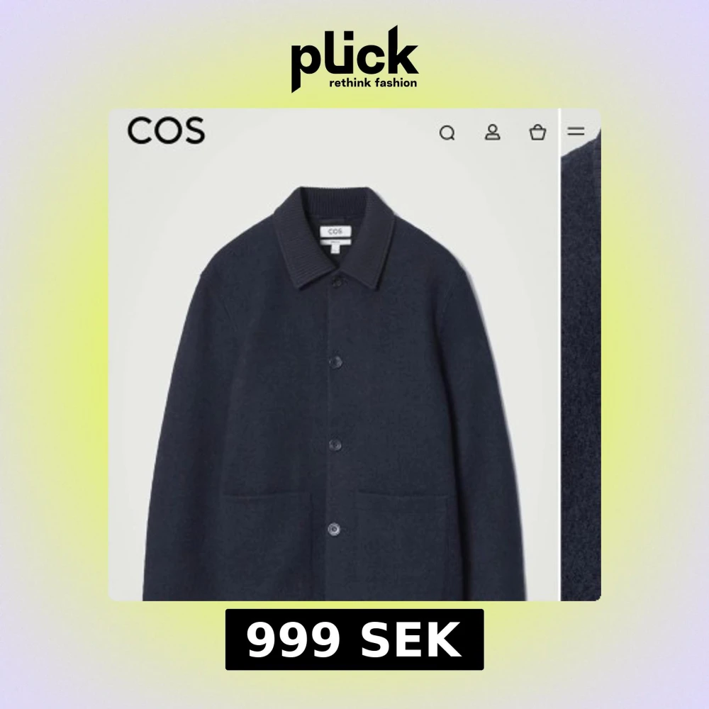 Säljer en stilren mörkblå jacka från COS i ullblandning. Jackan har klassisk krage med ribbade detaljer, knäppning framtill med knappar och två stora fickor. Perfekt för dig som gillar minimalistisk och clean stil. Nypris:1700kr