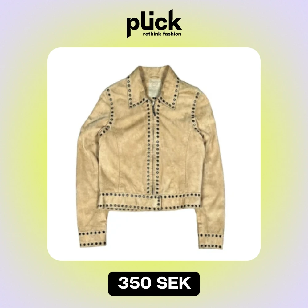 En croppad mockajacka med nitar. Står storlek L på etiketten men sitter nog mer som en M dam . Bra skick men en del tecken på användning. Bilderna är från annonsen jag köpte den från på vinted.