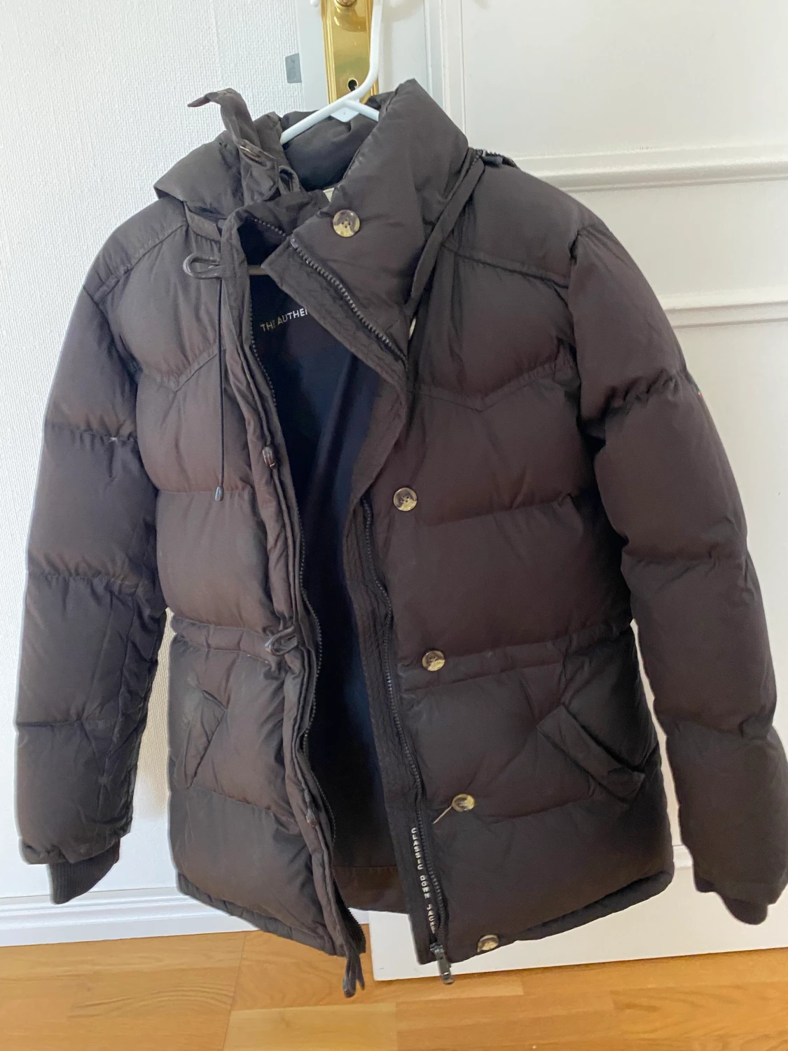 Jättefin brun dunjacka från Boomerng. Modell Alexandra i storlek Small. Medföljer fuskpälsarna.