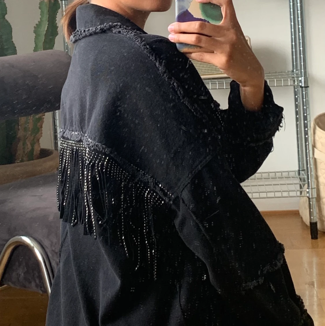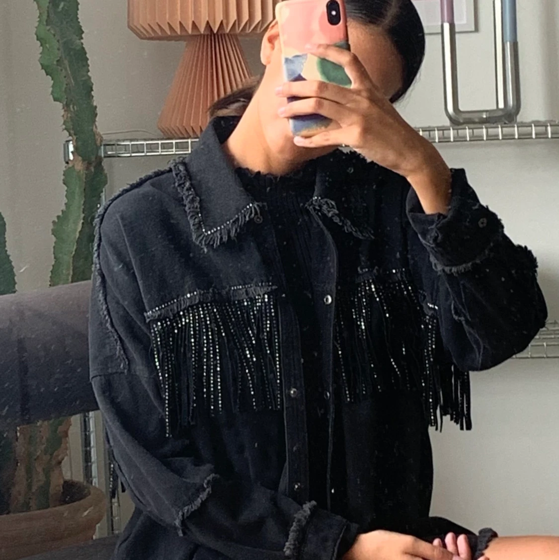 Grövre skjorta/tunnare jacka/överskjorta med fransar från Zara. Strl S men oversize. Köpt på Plick, finns ej kvar i butik! Nypris 599. Skickas eller möts i Stockholm.