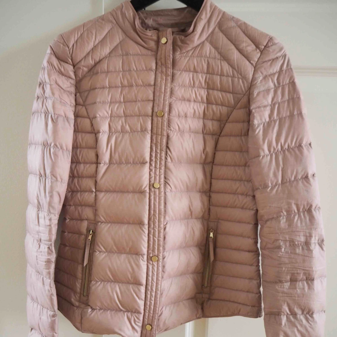VAD: Lättviktsdunjacka från Esprit, ljusrosa med guldiga detaljer. STORLEK: 34 SKICK: Använd fåtal gånger