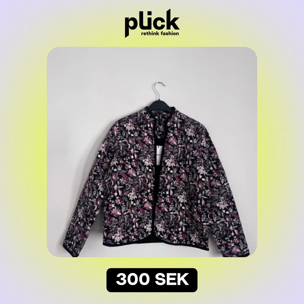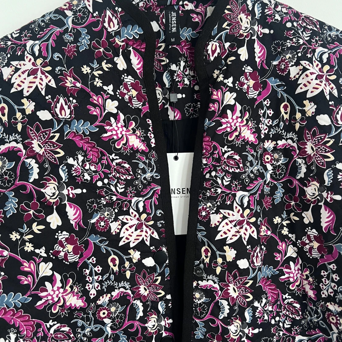 Supersöt och lätt jacka med blommönster. Jackan stängs med knappar.
