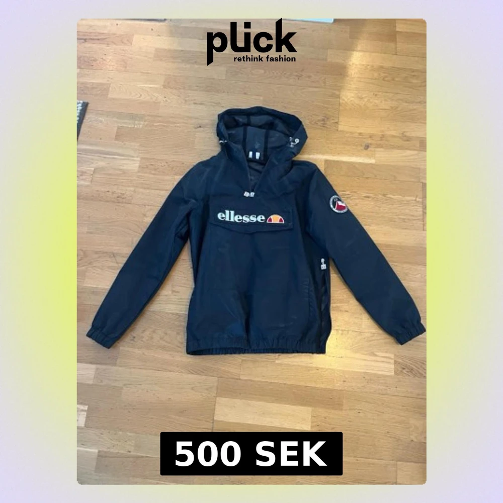 Snygg svart vindjacka från Ellesse med stor ficka över magen. Hyffsat tunn vindkacka, bra skick men finns mindre skavanker i färgen på vissa ställen.
