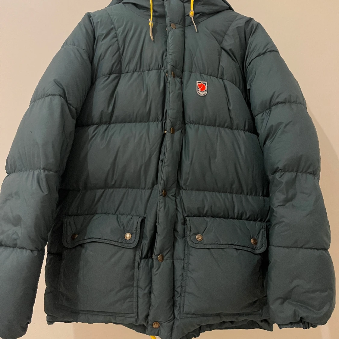 Otroligt varm och mysig fjällräven jacka i mörkgrön färg! Perfekt nu när det är kallt! Storlek M men är ganska stor! Finns 3 väldigt små hål annars i perfekt skick!