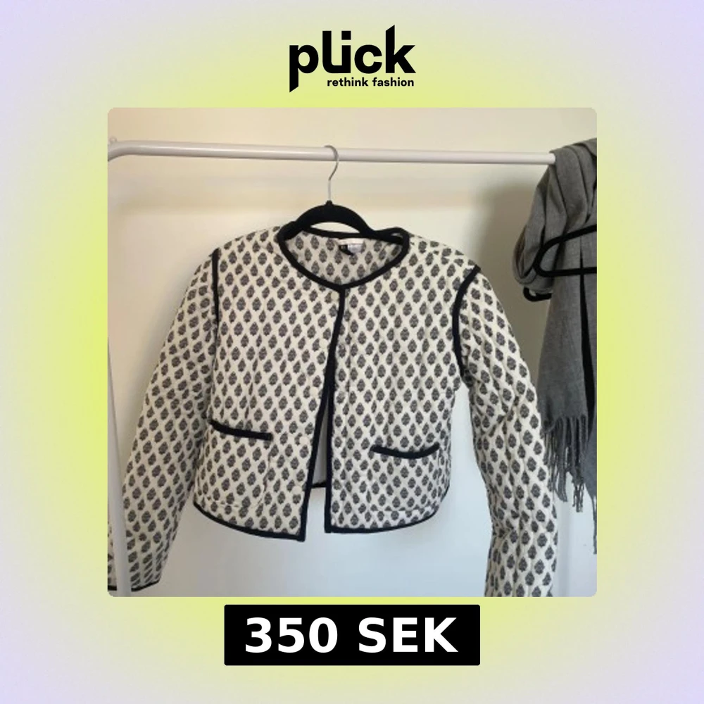 Quiltad overshirt i vitt med svart mönster och svarta kanter. Jackan har rund hals, knappar framtill och tvĂ„ fickor. Perfekt för lager-pĂ„-lager och ger en cool, avslappnad vibe till din outfit. Aldrig anvĂ€nd dĂ„ jag köpt i fel storlek đ