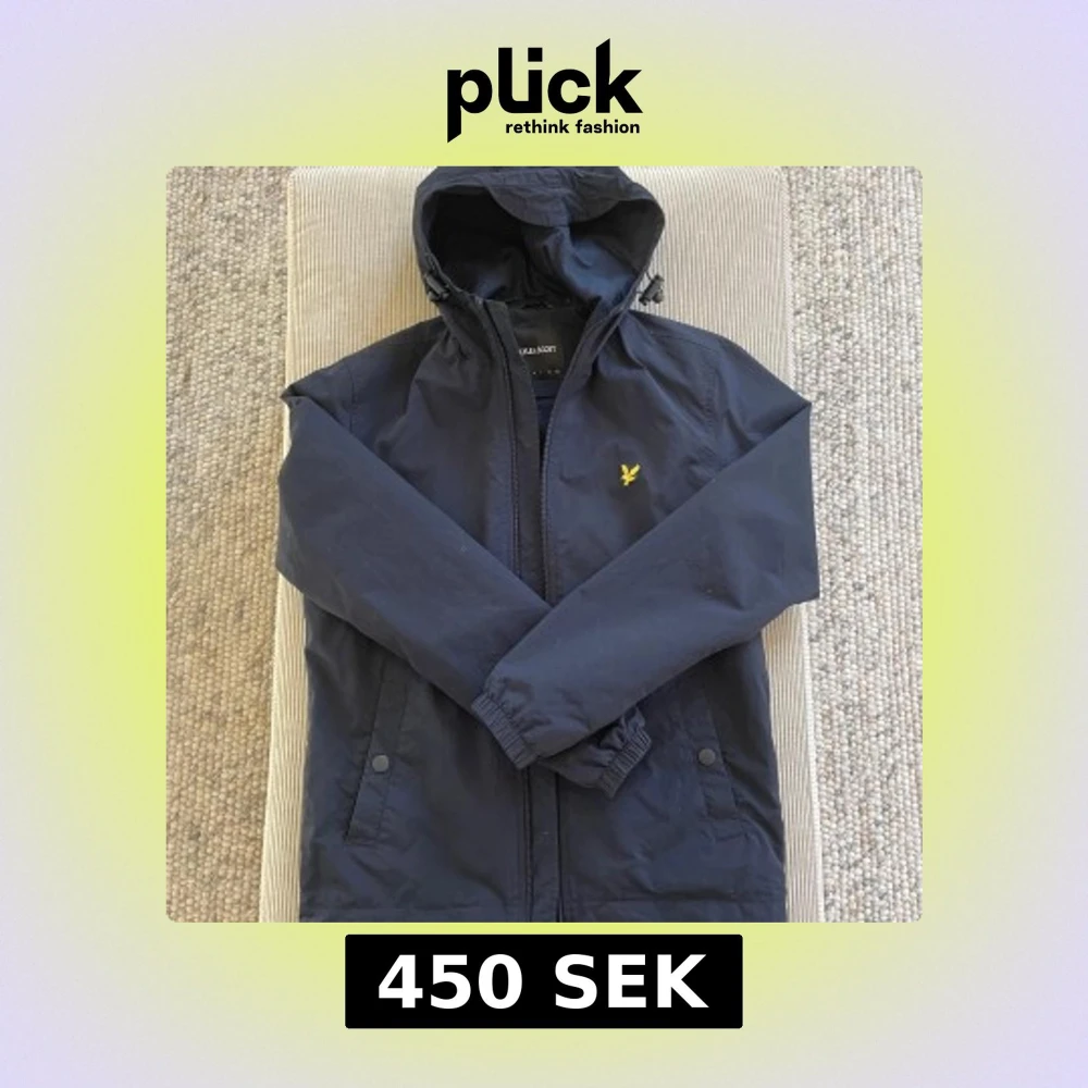 Tunn mörkblå skaljacka med huva från LYLE & SCOTT. Stängs med dragkedja fram och är åtdragbar i nederkant samt kring huva. Snedställda fickor med knapp i sidorna samt en innerficka. Foder i mesh och liten varumärkeslogo på vänster sida bröst.