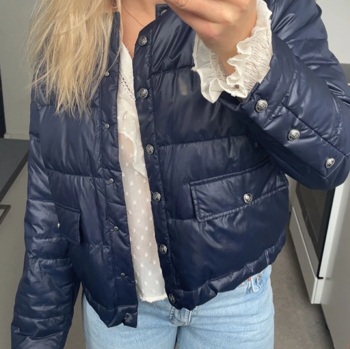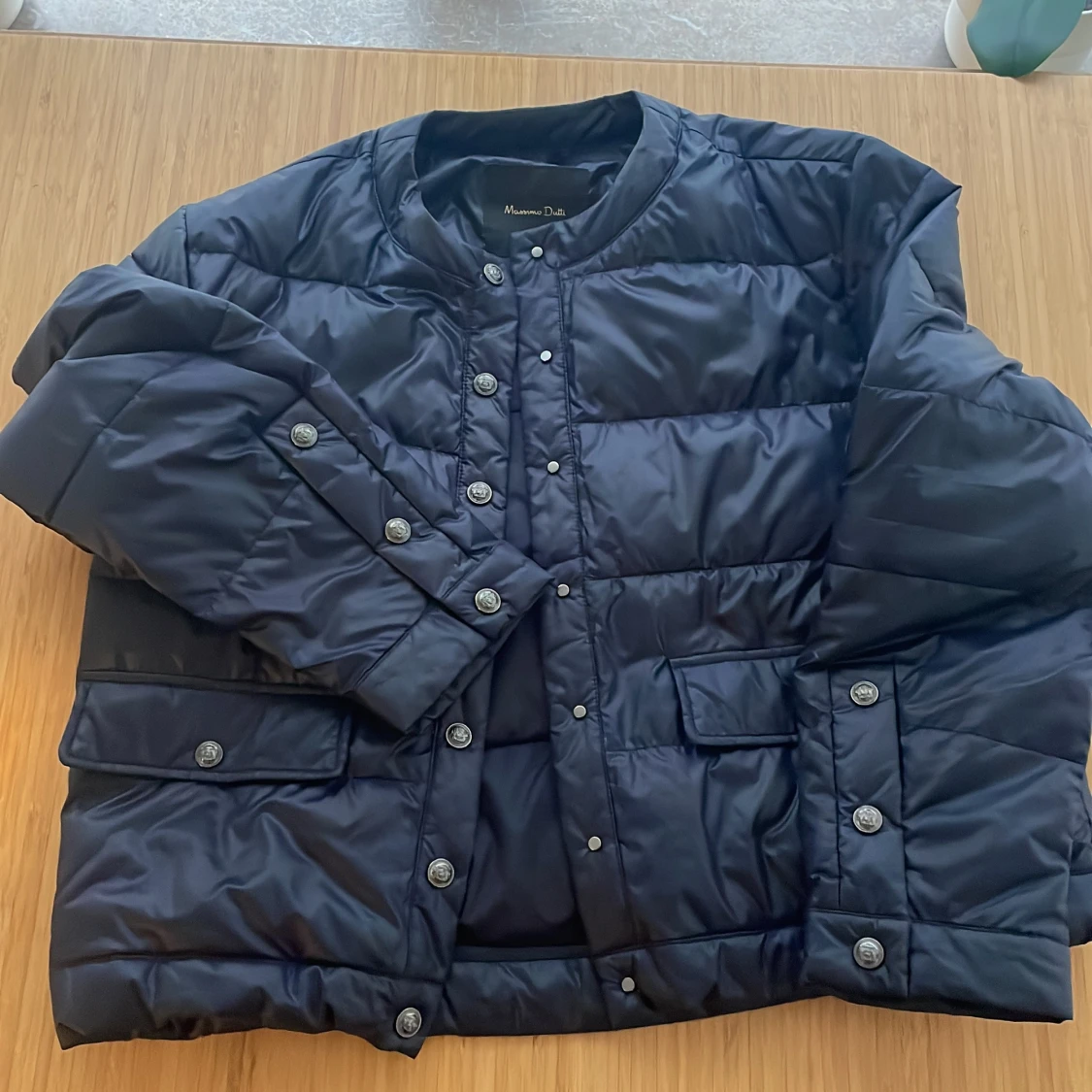 Snygg mörkblå jacka från Massimo Dutti med silvriga knappar i storlek Small. Jättefint skick, endast använd några gånger.