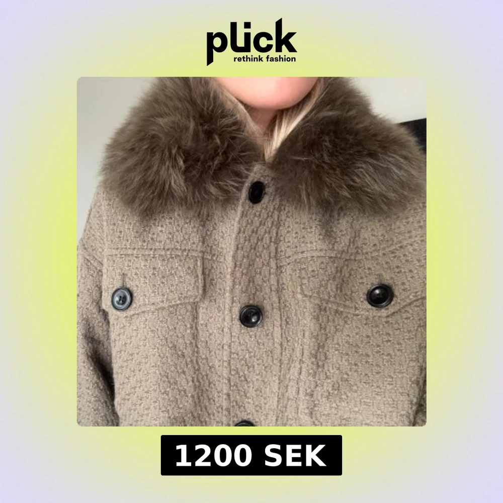 Jackan är från märket Meotine i en längre modell. Nypris för den korta varianten av samma jacka ligger på ca 5 000 kr, men jag minns tyvärr inte exakt vad jag betalade för denna. Den är i fint skick och väl omhändertagen – alla knappar är kvar och den är inte nopprig. Jag är 170 cm lång och brukar ha XS/S. Jackan är fodrad och på mig rymlig nog för att bära en tjock tröja eller en tunn väst under.