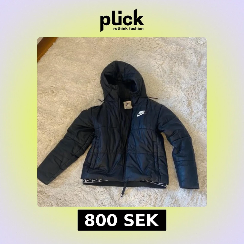 Snygg svart pufferjacka från Nike med huva och dragkedja. Storlek S