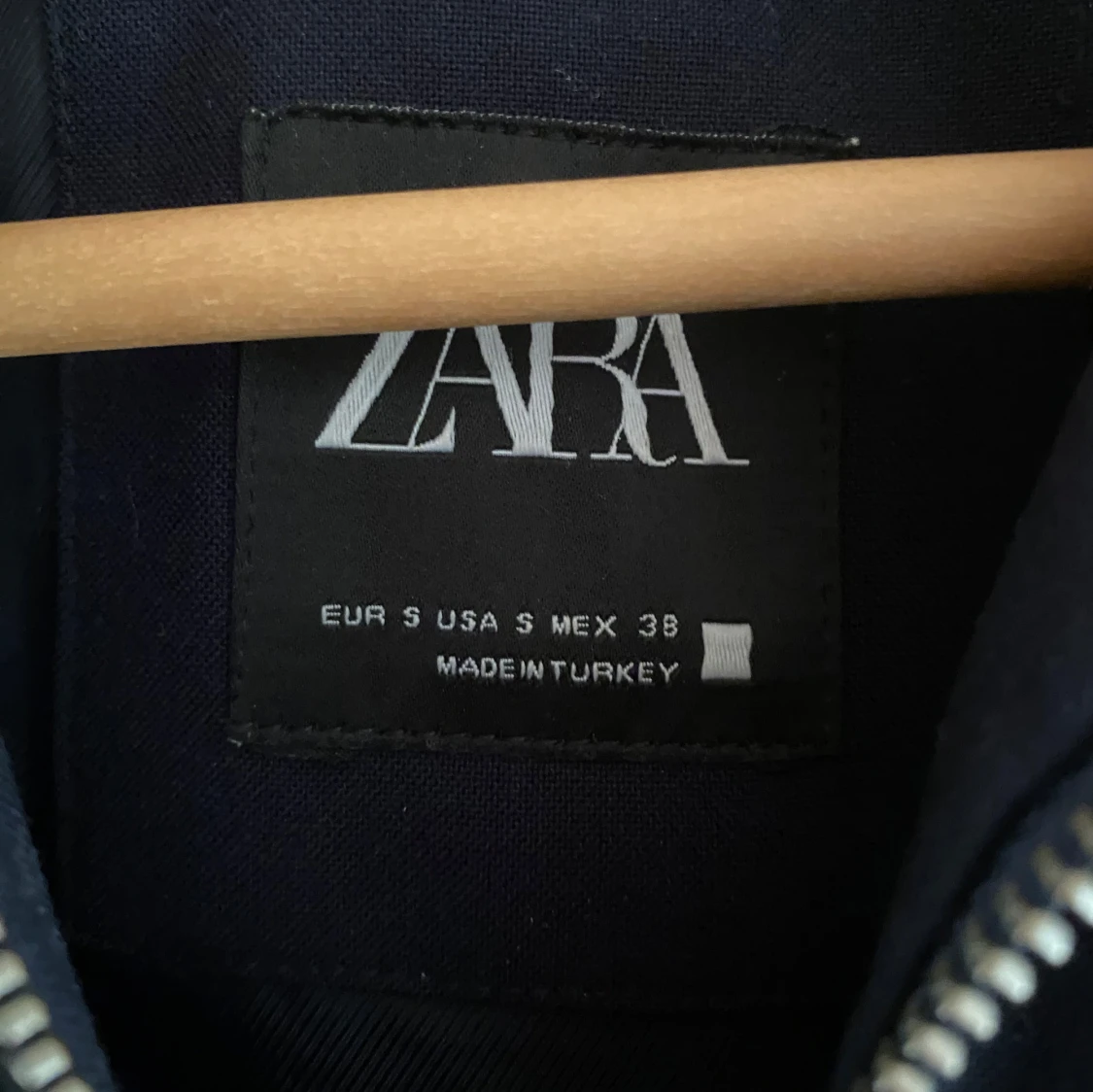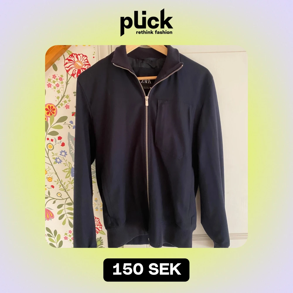 Säljer en stilren svart jacka från Zara i storlek S. Den är i mycket bra skick och passar till de flesta outfits. Perfekt för dig som vill ha en enkel men snygg look!