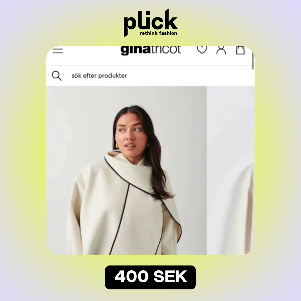 Snygg och stilren vit kappa från Gina Tricot med svarta detaljer. Perfekt för höst och vår, med en elegant design som passar både till vardags och fest. Kappan har en unik krage och är långärmad. Köpt för 699 kr och säljer för 400 kr
