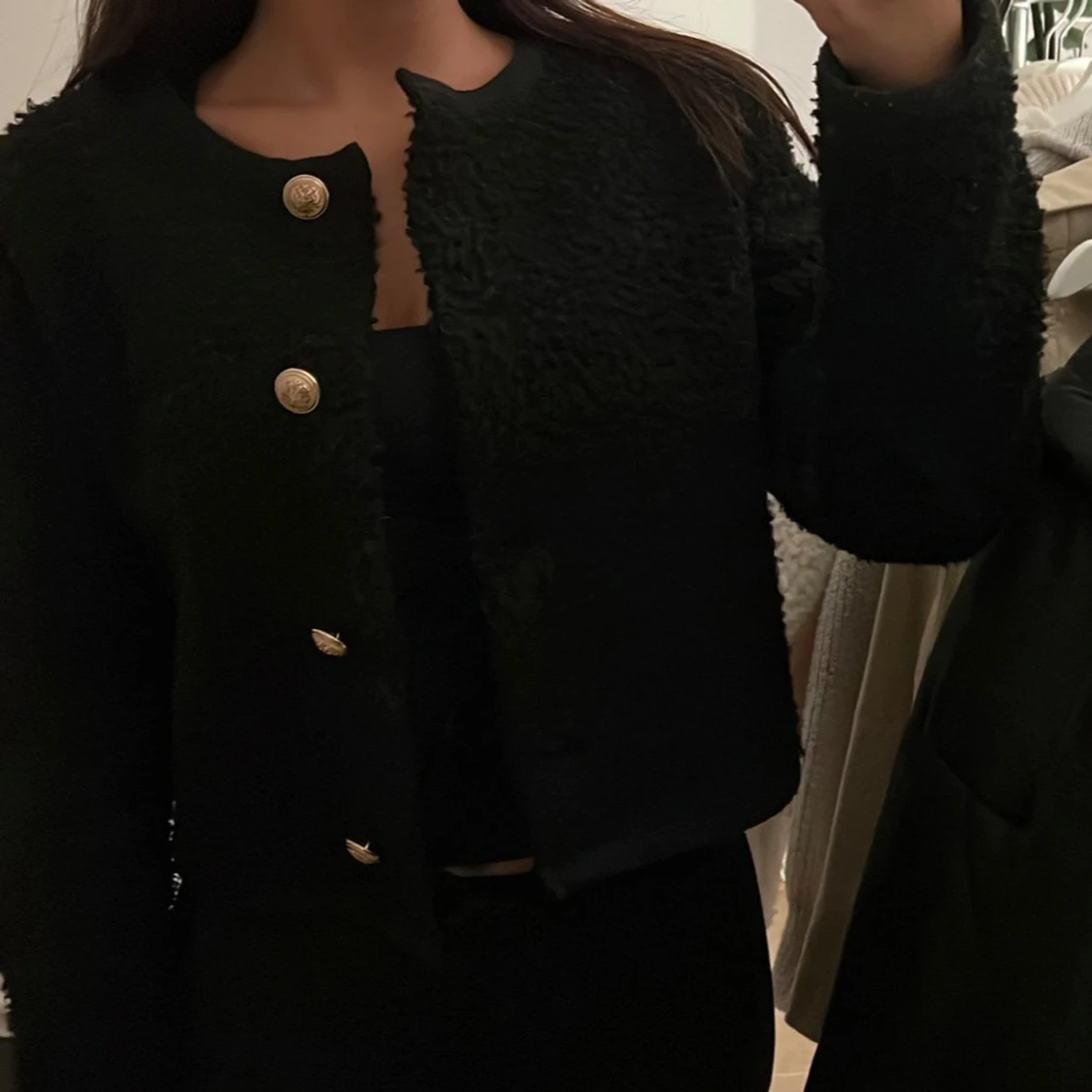 Vit Teddy jacka med guldknappar