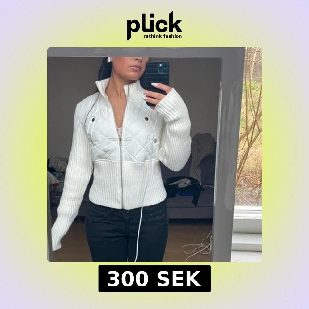 Säljer en snygg vit jacka med quiltade detaljer och dragkedja. Jackan har långa ärmar och en ribbad design som ger en tight passform. Perfekt för kyligare dagar när du vill ha snygg outfit❤️