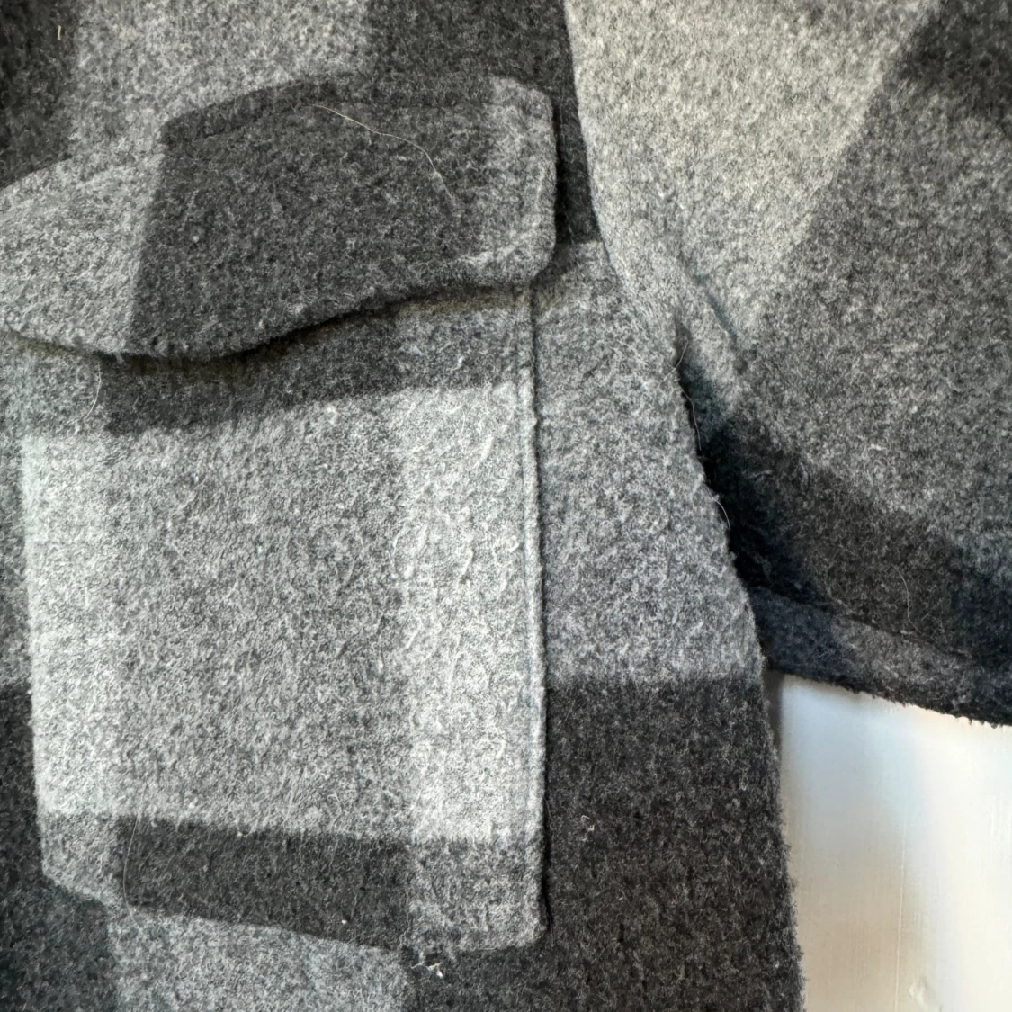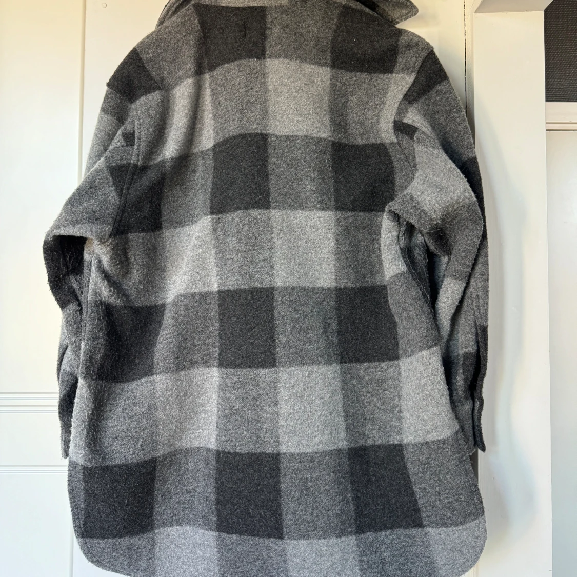 Shacket från H&M, strl M något oversized. Välanvänd, finns slitage (se bild). Fortfarande användbar och man lägger inte märke till slitaget. Inga hål.