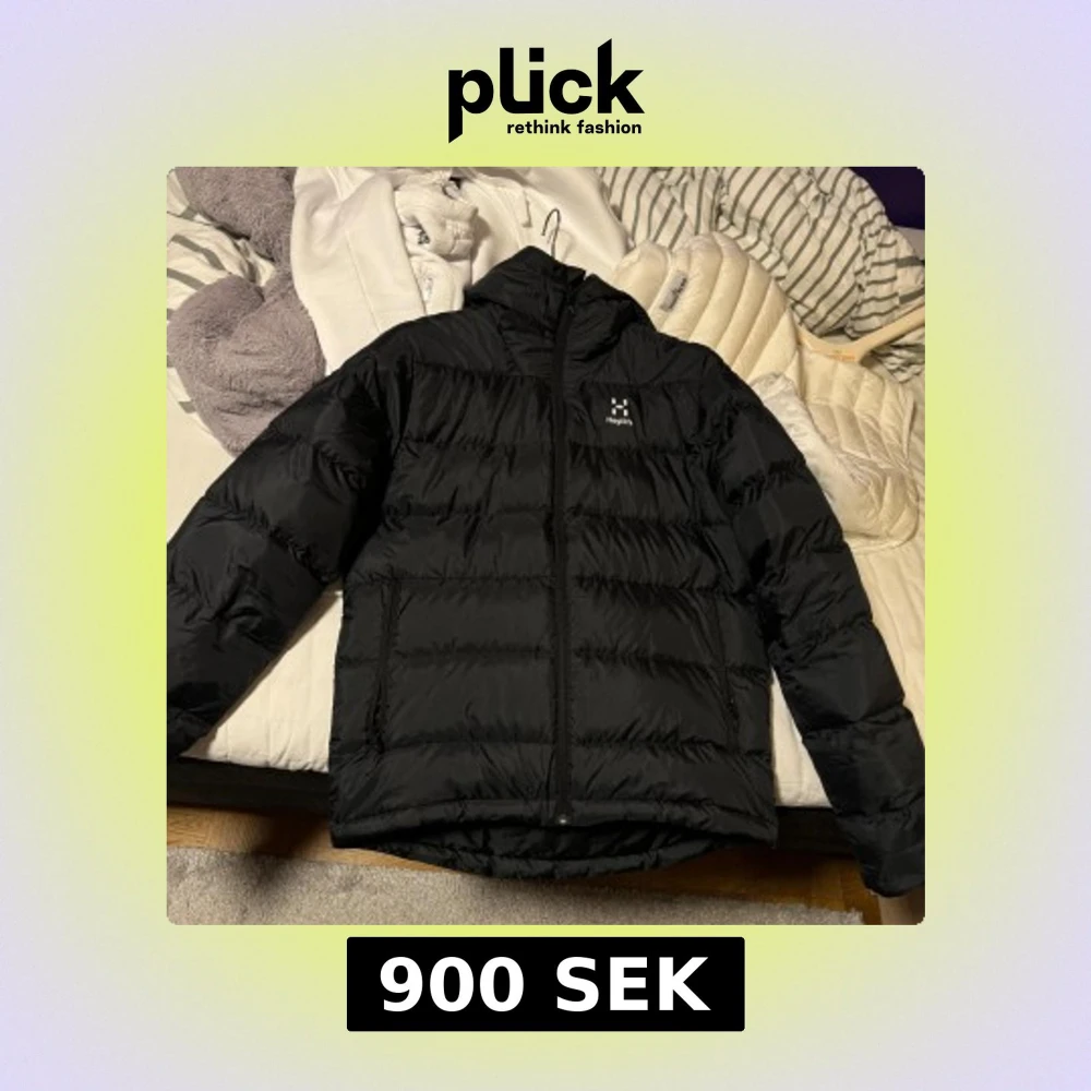 Snygg och varm svart dunjacka från Haglöfs med dragkedja och huva. Perfekt för kyliga dagar med sin pufferdesign som håller värmen. Jackan har en stilren look och är idealisk för både stad och natur.