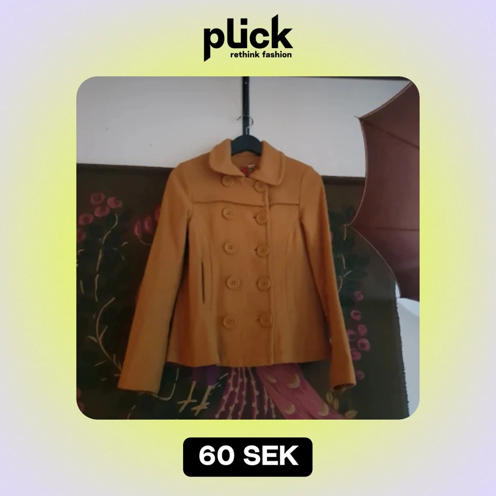 đSenapsgul kort kappađ Storlek 32. XS. Yttertyg: 60% ull, 40% viskos Foder: 100% polyester HM impuls början av 2000 talet. Inte anvĂ€nd pĂ„ över 15 Ă„r. Fint skick. NĂ„n lös trĂ„d. NĂ„gra noppor, flesta dras lĂ€tt bort. Mer bilder finns