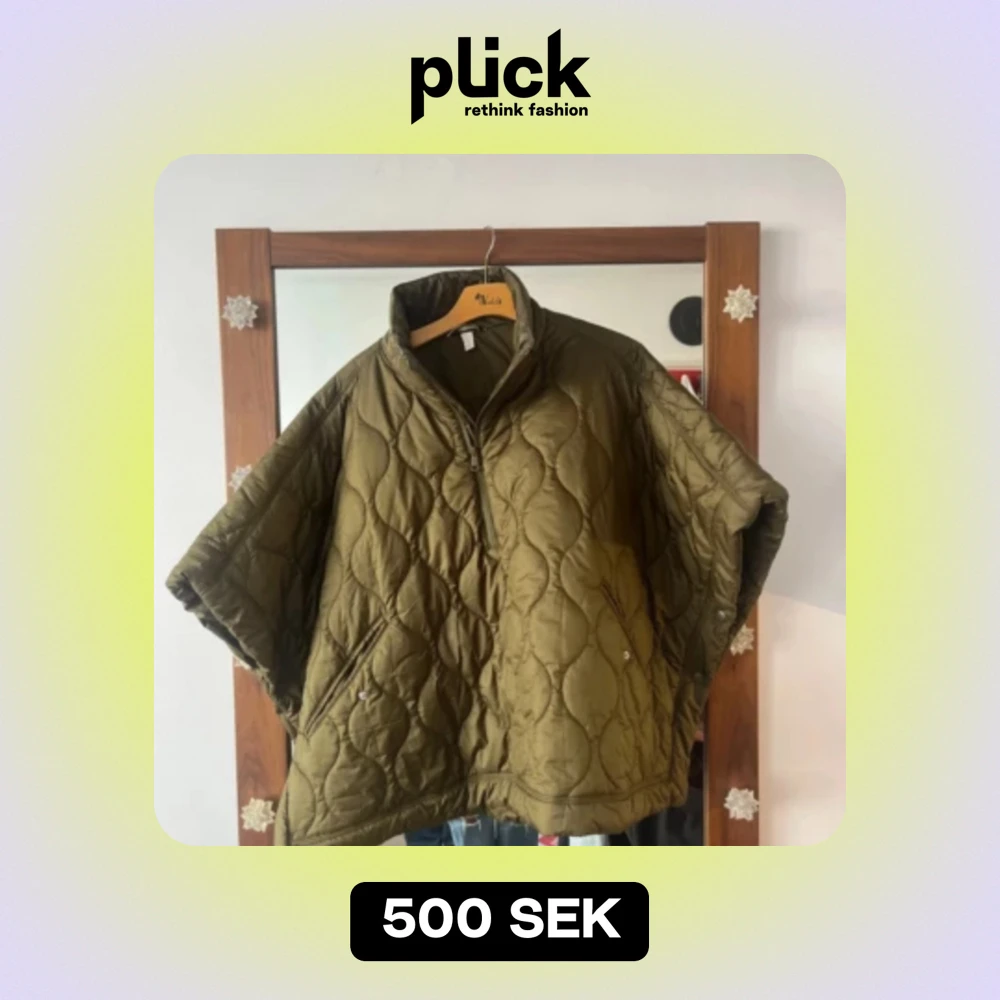 Mörkgrön quiltad jacka/poncho från hm, perfekt oversized