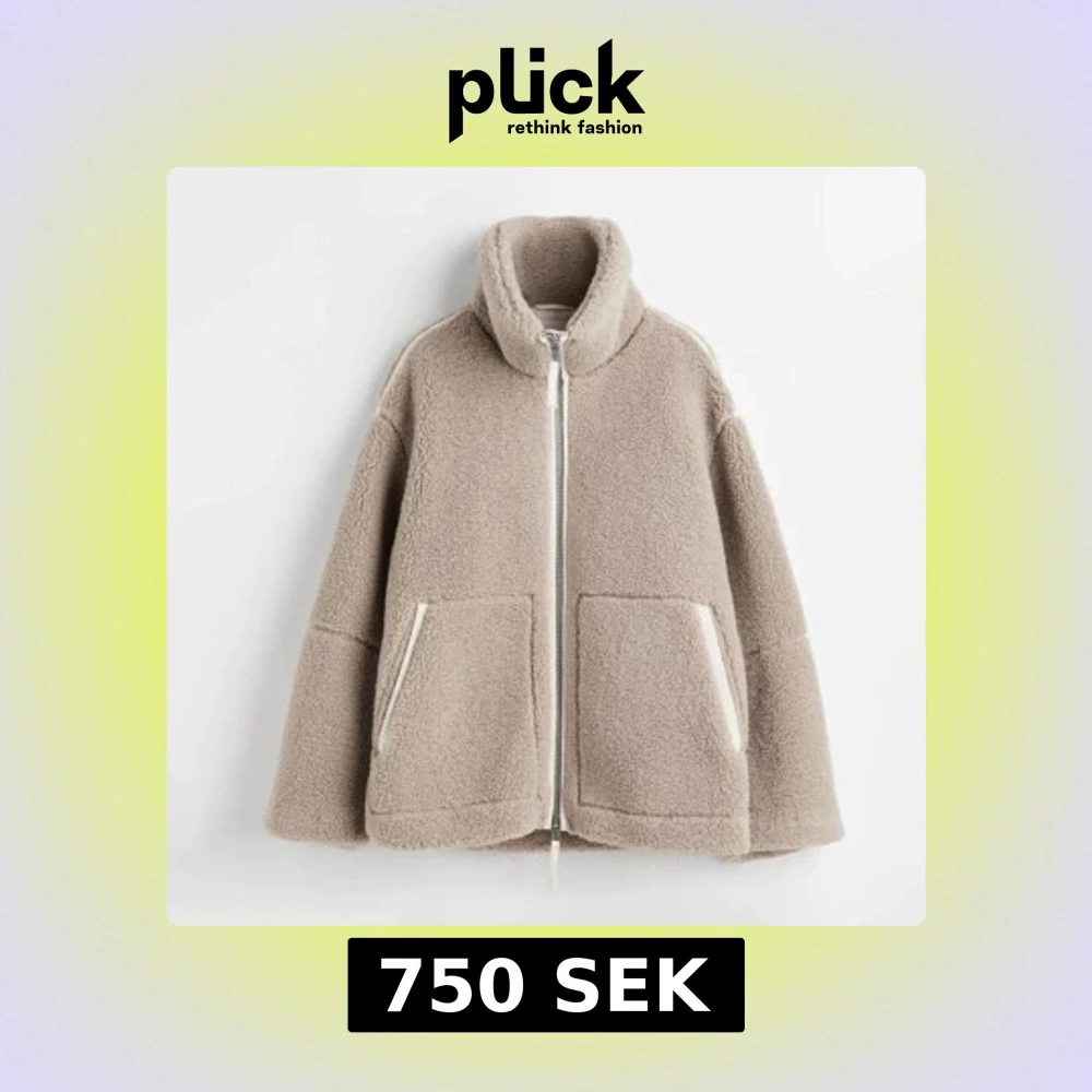 Mysig beige teddyjacka med hög krage och dragkedja framtill. Jackan är helt slutsåld överallt och har stor efterfrågan!!