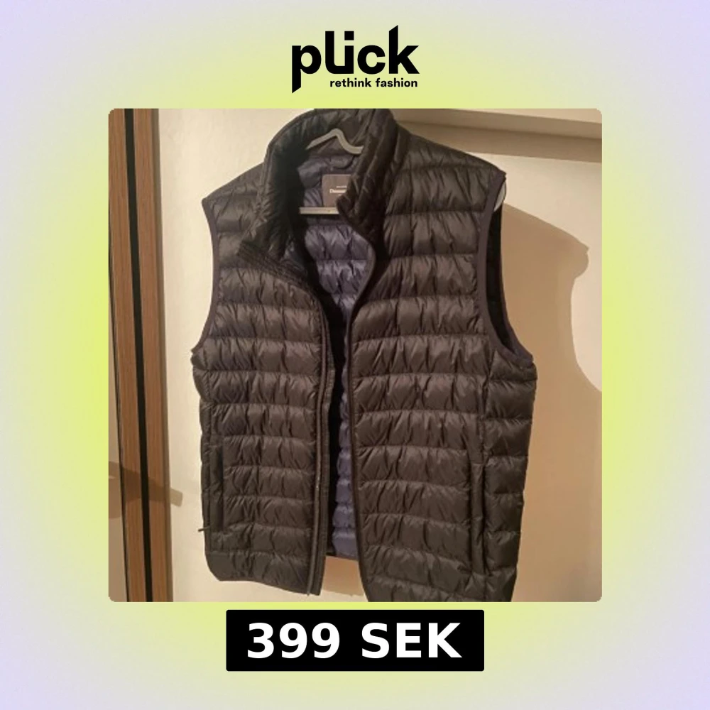 Stilren svart dunväst från Dressmann i storlek M. Västen har quiltad design, hög krage och dragkedja framtill. Perfekt att slänga över en hoodie eller tröja för extra värme. Lätt och smidig att bära med sig. Den är svart utanpå och mörkblå på in sidan. Det är bara att höra av dig vid frågor eller pris!