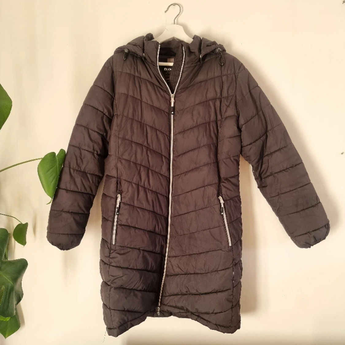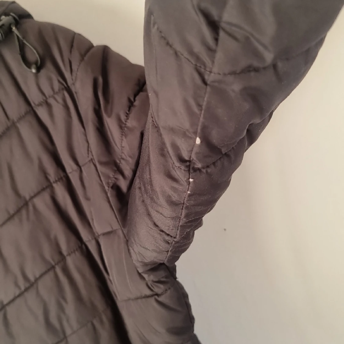 En såndär längre och skön jacka som är perfekt till utflykter eller grillning ute i skogen till exempel. Lite sliten i sömmen vid armbågen, annars fint skick! Den går nästan ner till knäna på mig som är 165cm lång. Jackan är svart.