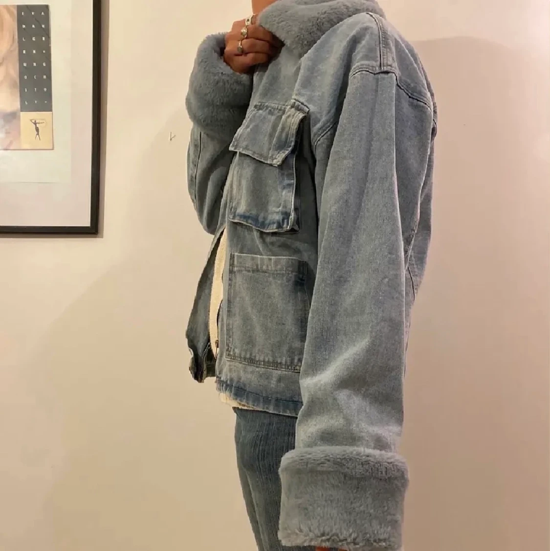 En så fin jeans jacka med ”fluff”, perfekt till hösten. Helt slutsåld💓Aldrig använd