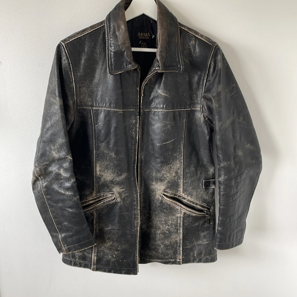 Riktigt fräck läderjacka i riktigt läder. Sparsamt använd Storlek M