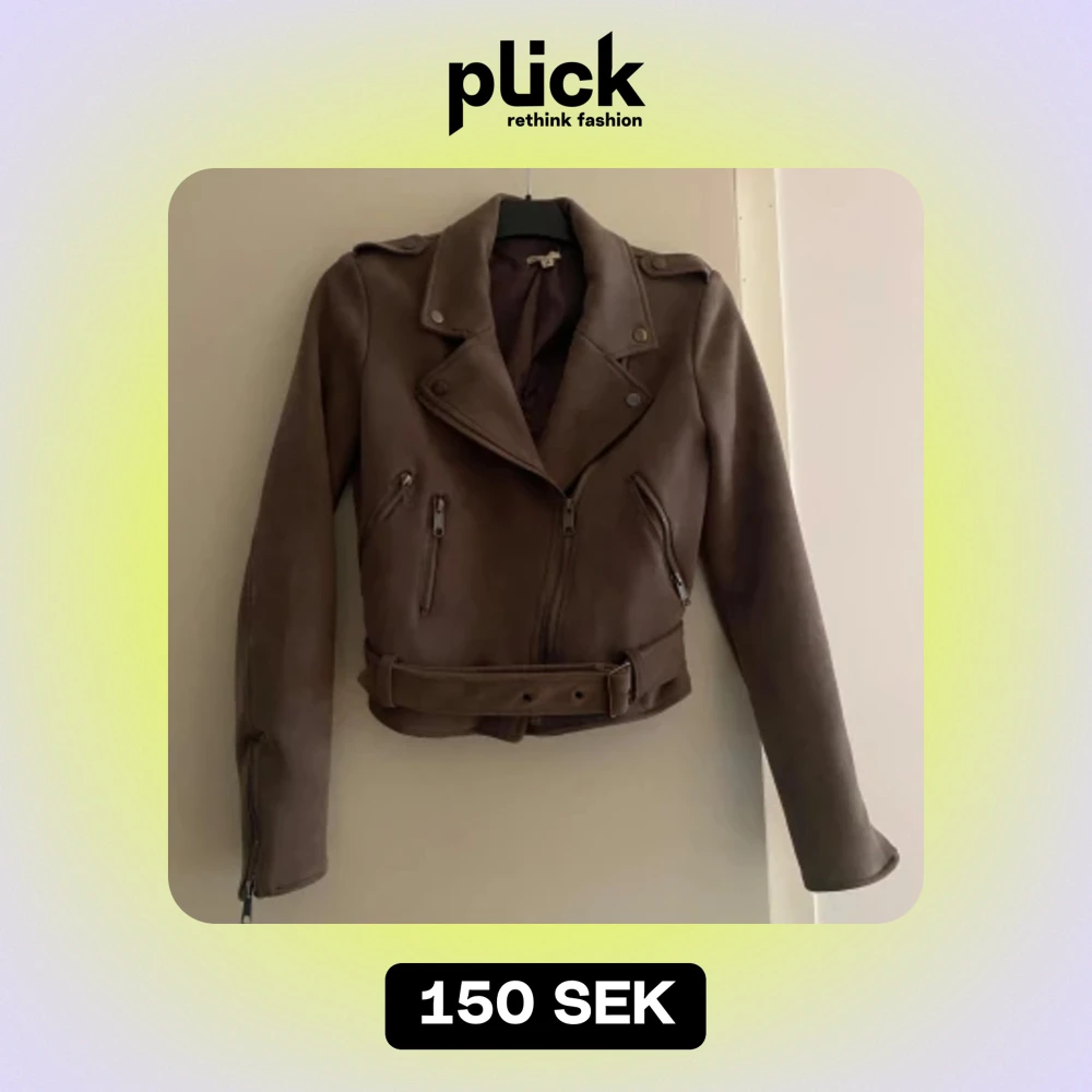 Jacka i mockaimitation från Nelly. Mörk beige/ brun. Använd fåtal gånger, mycket fint skick. Strl 34.